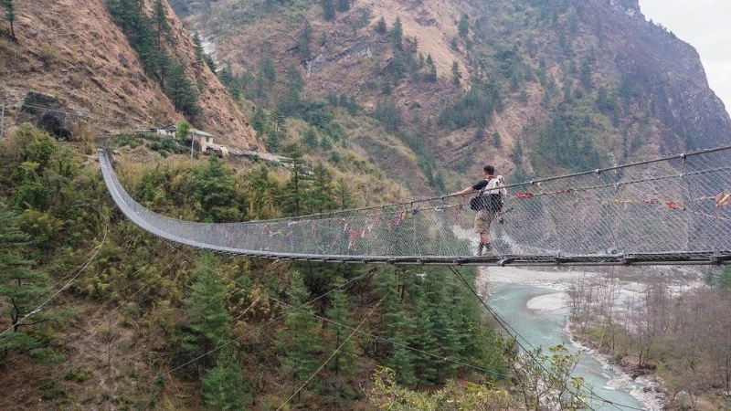 ネパールのガサ吊り橋は、アンナプルナ地方の人里離れた村々を結ぶ、地元の人々にとっても家畜にとっても重要な通路である。一見不安定に見えるが、この橋はヤギ、ヒツジ、ウシなどの家畜が毎日移動できるように設計されている。この狭い橋を渡る家畜を観察するのは、観光客にとっては緊張を強いられる体験かもしれないが、ネパールの農村生活における橋の重要性を浮き彫りにしている。周囲のヒマラヤ山脈の風景がドラマチックな舞台をさらに盛り上げ、トレッカーや旅行者にとって忘れられない訪問地となっている。