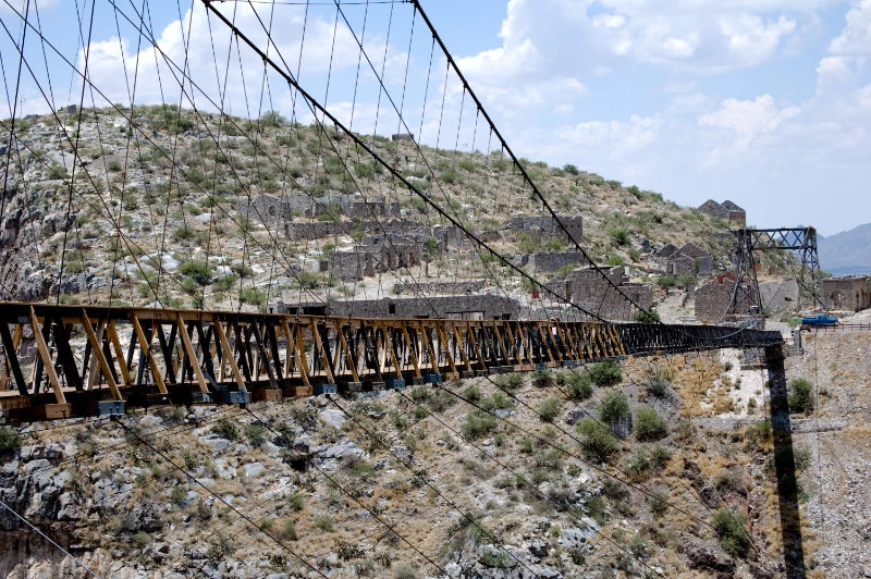 オジュエラ橋は、もともとメキシコのドゥランゴにあるオジュエラ金鉱への主要なアクセスルートとして建設されたが、現在は魅力的な観光スポットと歩行者専用道路として機能している。19世紀後半に建設されたこの吊り橋は、深い渓谷に架かり、周囲の砂漠の景色の素晴らしい眺めを提供している。産業的な目的は薄れたものの、この橋は工学的な工夫とこの地域の鉱山の歴史の証として残っている。かつてこの橋を毎日利用していた鉱夫たちの賑わいを想像しながら、橋を歩いて渡ることができる。