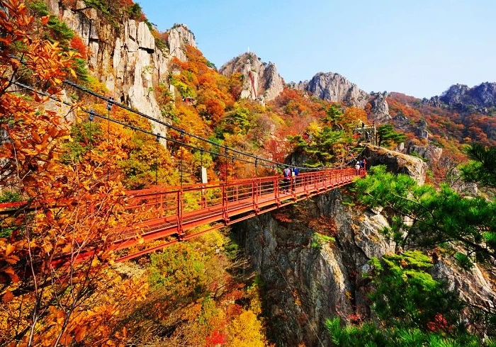 韓国最小の国立公園である月出山(ウォルチュルサン)国立公園には、韓国で最も険しく、最も爽快な吊り橋として有名な雲の橋がある。ドラマチックな渓谷にかかるこの橋からは、周囲の山々や渓谷の息を呑むような絶景が楽しめる。雲橋は、その困難な傾斜と高さにもかかわらず、冒険を求める人や自然愛好家を世界中から惹きつけている。公園自体も隠れた名所であり、緑豊かな風景、鮮やかな植物、穏やかなハイキングコースが特徴だ。